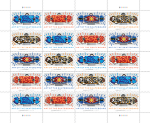 The Art of Skateboard stamps are being issued as Forever® stamps. Forever stamps are always equal in value to the current First-Class Mail® one-ounce price.