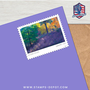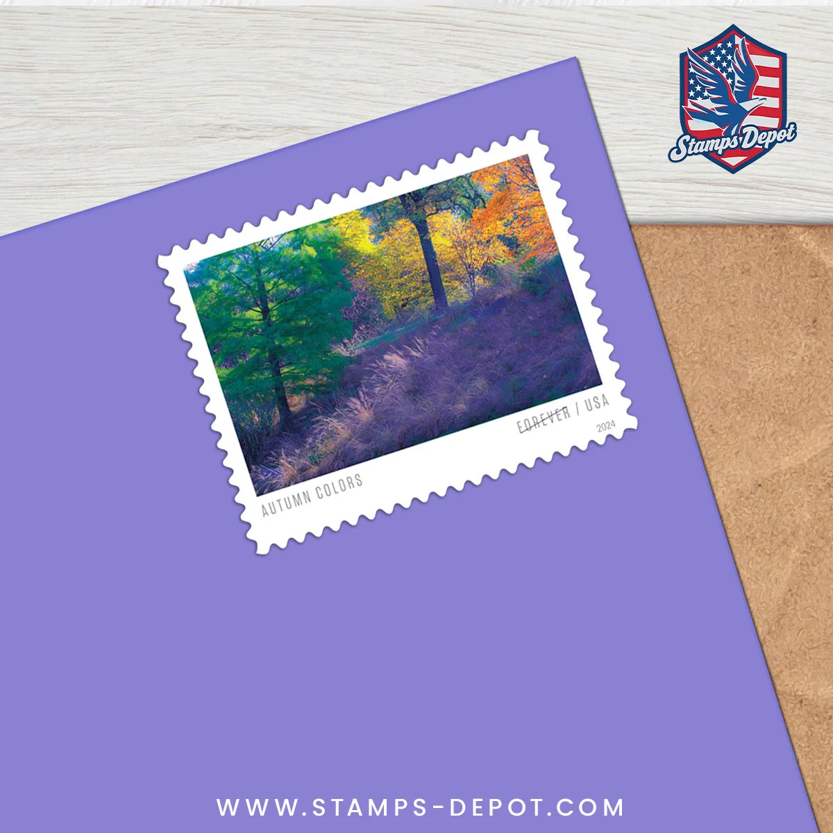 The Autumn Colors stamps are being issued as Forever® stamps in panes of 20. These Forever stamps will always be equal in value to the current First-Class Mail® one-ounce price.