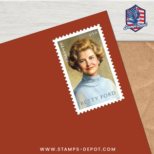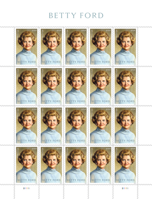 The Betty Ford stamp is being issued in panes of 20 Forever® stamps. This Forever stamp will always be equal in value to the current First-Class Mail® one-ounce price.