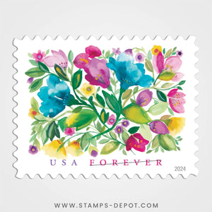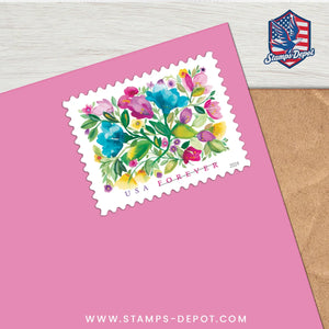 Celebration Blooms, a Forever® stamp from the U.S. Postal Service, offers a dreamy tableau of abstract flowers and greenery created especially for life’s singular moments.