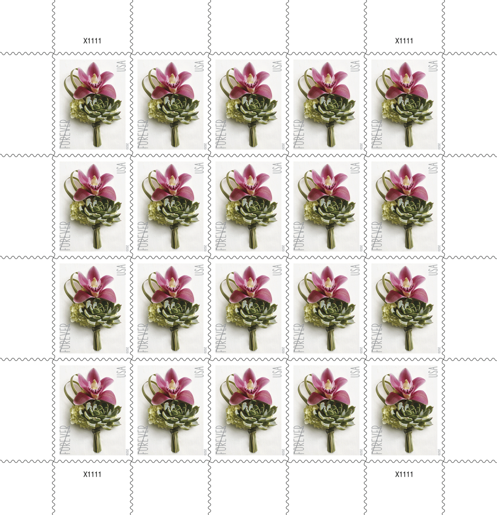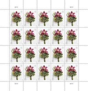 The Contemporary Boutonniere stamp is issued as a Forever stamp. This Forever stamp will always be equal in value to the current First-Class Mail® one-ounce price.