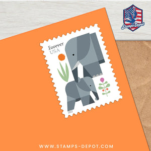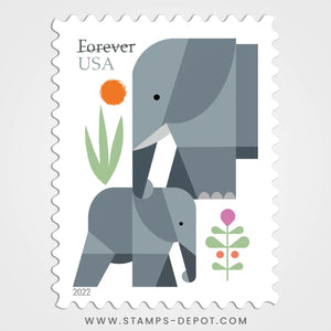 The Elephants stamp is being issued as a Forever® stamp in booklets of 20. This Forever stamp is always equal in value to the current First-Class Mail® one-ounce price.