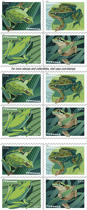 The Frogs stamp is being issued as a Forever® stamp in booklets of 20. This Forever stamp is always equal in value to the current First-Class Mail® one-ounce price.