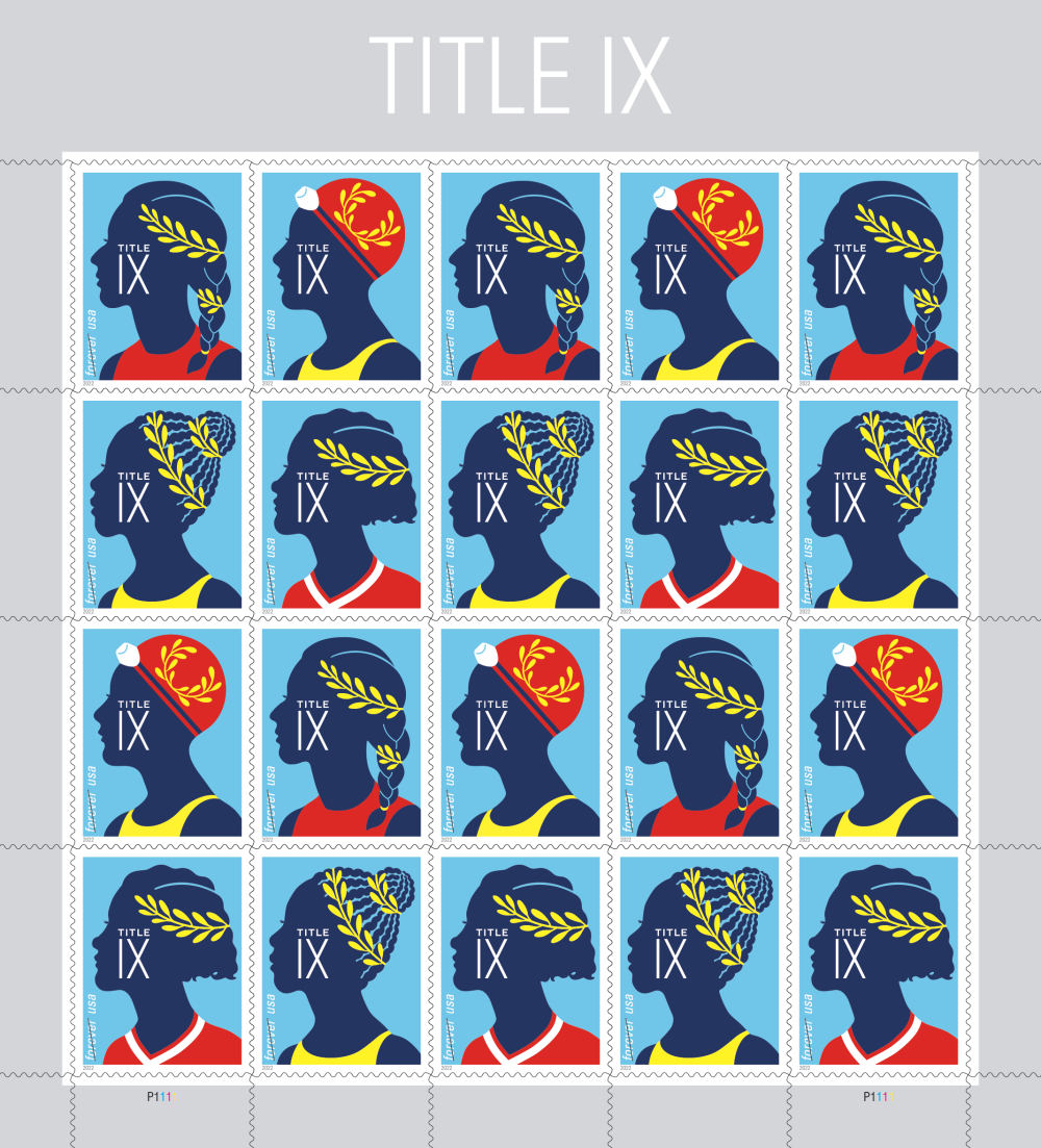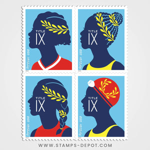 With these stamps, the U.S. Postal Service commemorates the 50th anniversary of the passage of Title IX, a civil rights law prohibiting discrimination on the basis of sex from any educational program or activity receiving federal financial assistance. Title IX was passed as a clause in the Education Amendments of 1972.