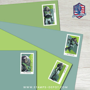 In Lightyear (2022), the legendary Space Ranger goes beyond — on an intergalactic adventure — revealing the story that inspired the toy. Audiences meet the hero himself, gaining fresh appreciation for the classic character. These bold new stamps capture the excitement!