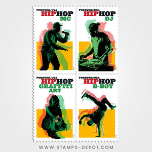 The Hip Hop stamps are issued as Forever® stamps. These Forever stamps are always equal in value to the current First-Class Mail® one-ounce price.