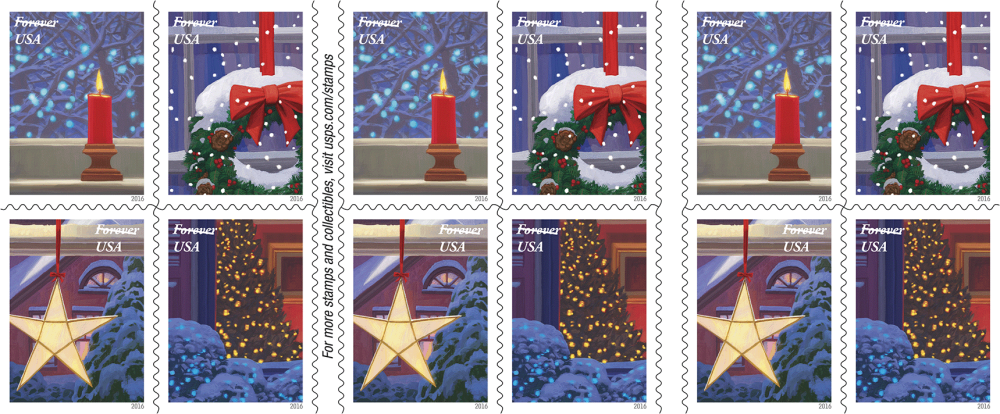 With four warm, inviting illustrations of winter scenes featuring windows, the Holiday Windows Forever® stamps rejoice in the simple pleasures of the season.