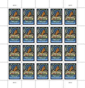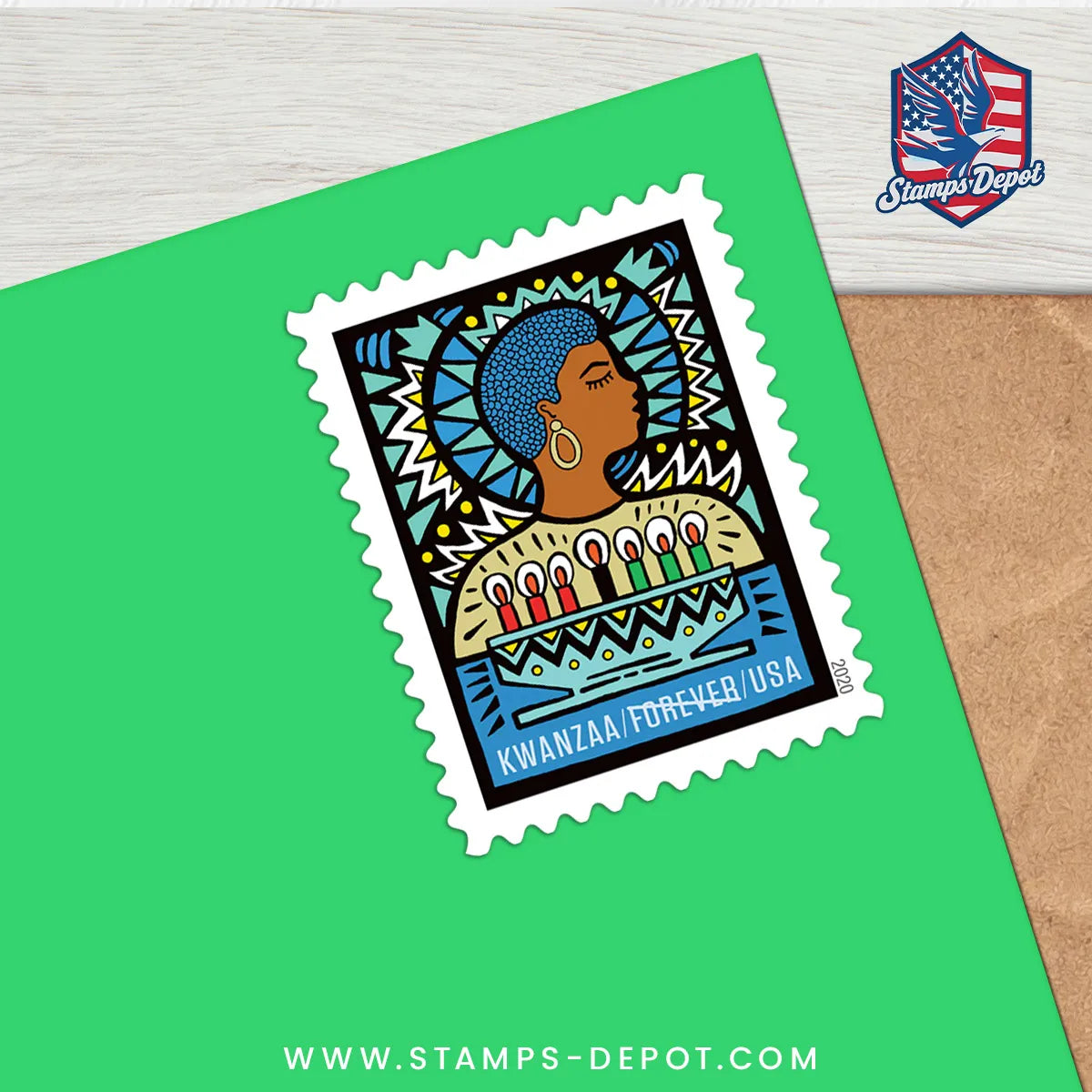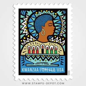 The Kwanzaa stamp is being issued as a Forever® stamp in panes of 20. This Forever stamp will always be equal in value to the current First-Class Mail® one-ounce price.