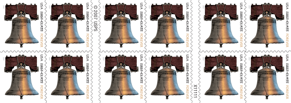 The Liberty Bell stamp is being issued as a Forever® stamp. This Forever stamp will always be equal in value to the current First-Class Mail® one-ounce price.