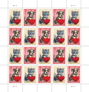 The U.S. Postal Service continues its popular Love series with two stamps, one featuring a kitten and the other a puppy.