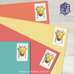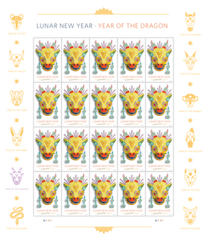 In 2024, the U.S Postal Service issues the fifth of 12 stamps in the newest Lunar New Year series. The Year of the Dragon begins February 10, 2024, and ends on January 28, 2025.