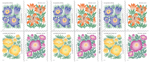 The Mountain Flora stamps are being issued in booklets of 20 Forever® stamps. These Forever stamps will always be equal to the current First-Class Mail® one-ounce price.