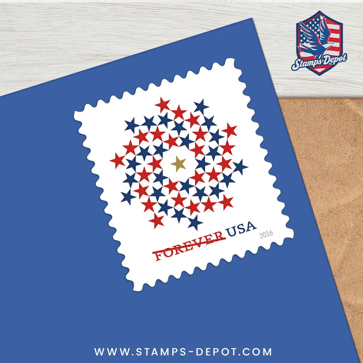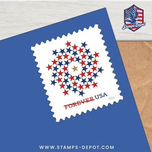 The Patriotic Spiral stamp is being issued as a Forever® stamp. This Forever stamp will always be equal in value to the current First-Class Mail® one-ounce price.