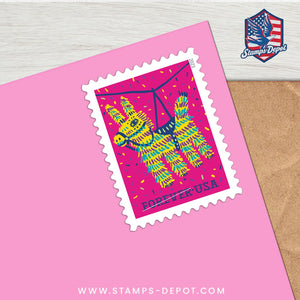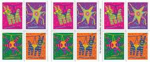 The U.S. Postal Service celebrates the fun of piñatas with a booklet of 20 colorful and festive stamps.