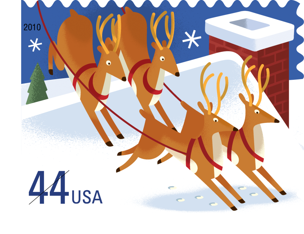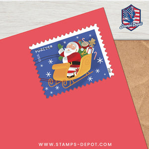 The Santa and Sleigh stamps are being issued as Forever® stamps. Forever stamps are always equal in value to the current First-Class Mail® one-ounce rate.