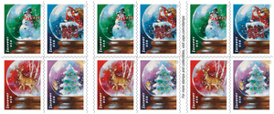 Beloved by children and adults alike, snow globes can be miniature works of art, wacky souvenirs, or anything in between. Celebrating the spirit of the holidays, the U.S. Postal Service captures the playful pleasure of Christmas snow globes on four stamps.