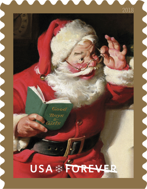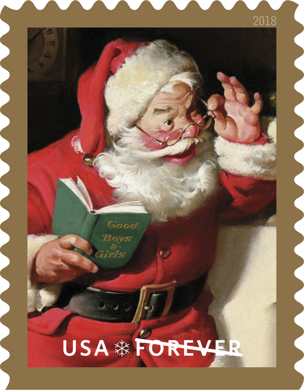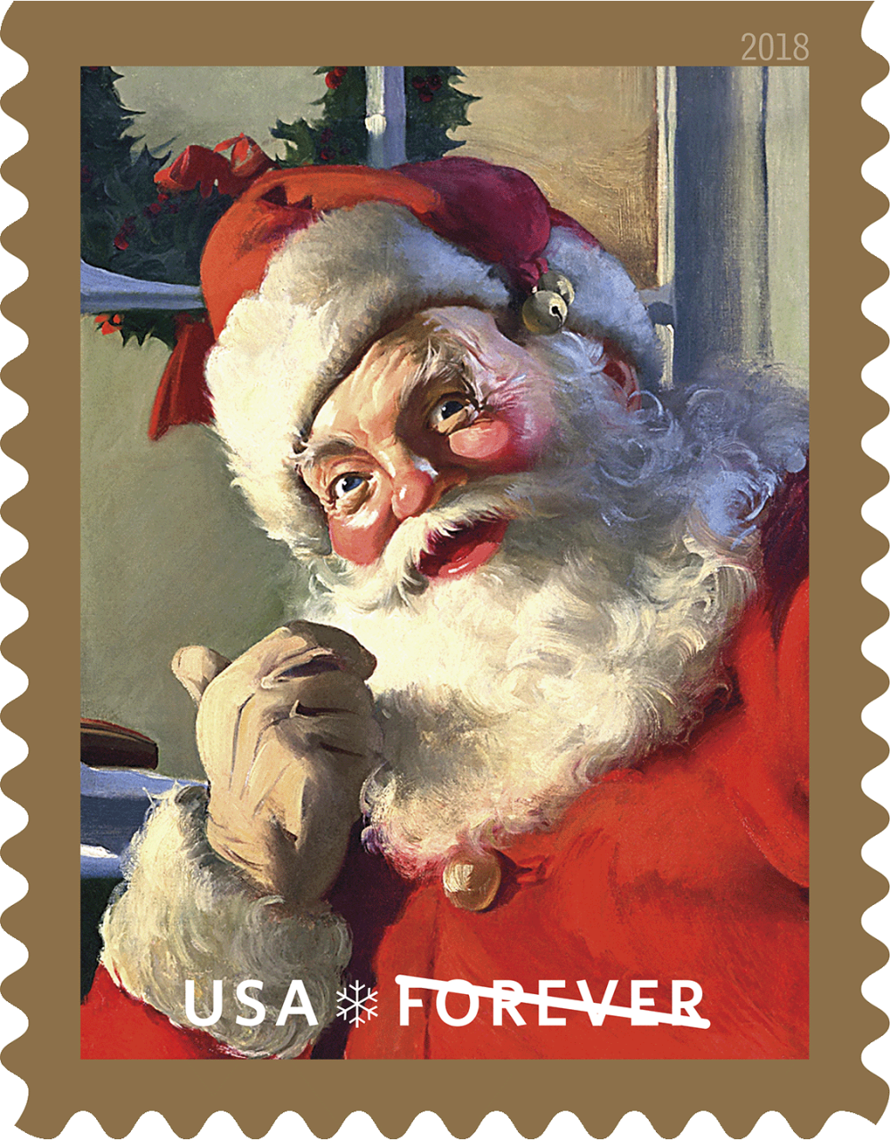 The U.S. Postal Service® celebrates Christmas with Sparkling Holidays, four new stamps featuring classic images of Santa Claus painted by famed commercial artist Haddon Sundblom.