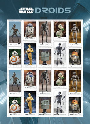 The Star Wars™ Droids stamps are issued as Forever® stamps. These Forever stamps are always equal to the current First-Class Mail® one-ounce price.
