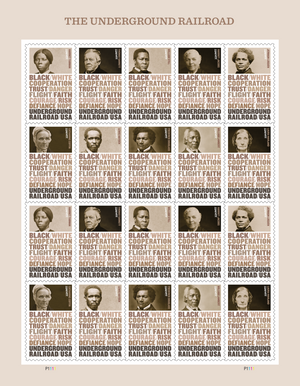 Most remained anonymous, but some left their mark on history. The pane of 20 stamps depicts 10 men and women who escaped slavery and/or helped others escape.
