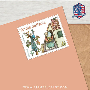 With this stamp, the U.S. Postal Service honors prolific children’s book author and illustrator Tomie dePaola (1934–2020), whose extraordinarily varied body of work encompasses folktales and legends, informational books, religious and holiday stories, and touching autobiographical tales. Deceptively simple, dePaola’s stories contain layers of emotional meaning that appeal to readers of all ages.