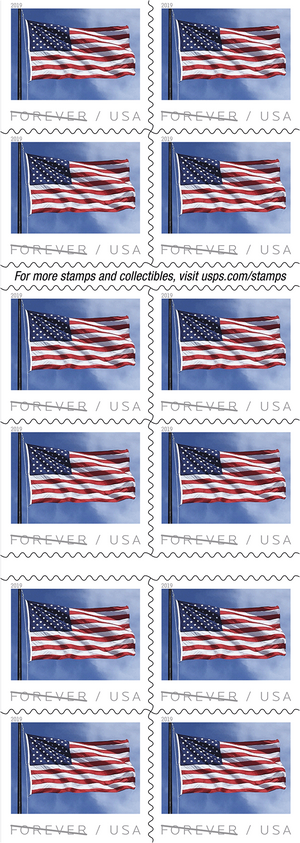 The U.S. Flag stamp is being issued as a Forever® stamp. This Forever stamp will always be equal in value to the current First-Class Mail® one-ounce price.