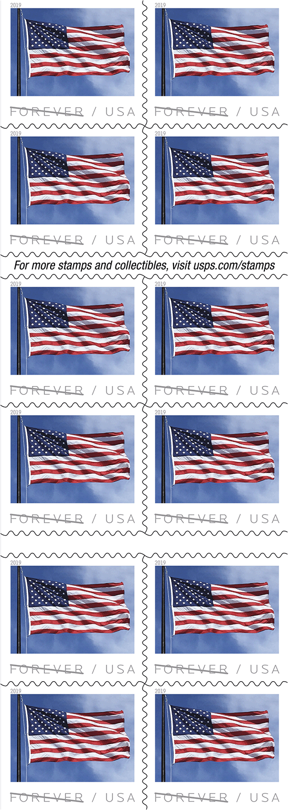 With this 2019 stamp, the Postal Service™ celebrates the American flag, the most recognizable symbol of our nation. Since its creation in the late 18th century, the Stars and Stripes has flown proudly through war and peace, stateside and abroad, and even on the surface of the moon.