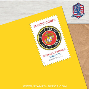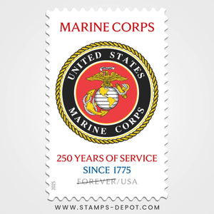 The U.S. Marine Corps 250th stamp is being issued as a Forever® stamp. This Forever stamp will always be equal in value to the current First-Class Mail® one-ounce rate.