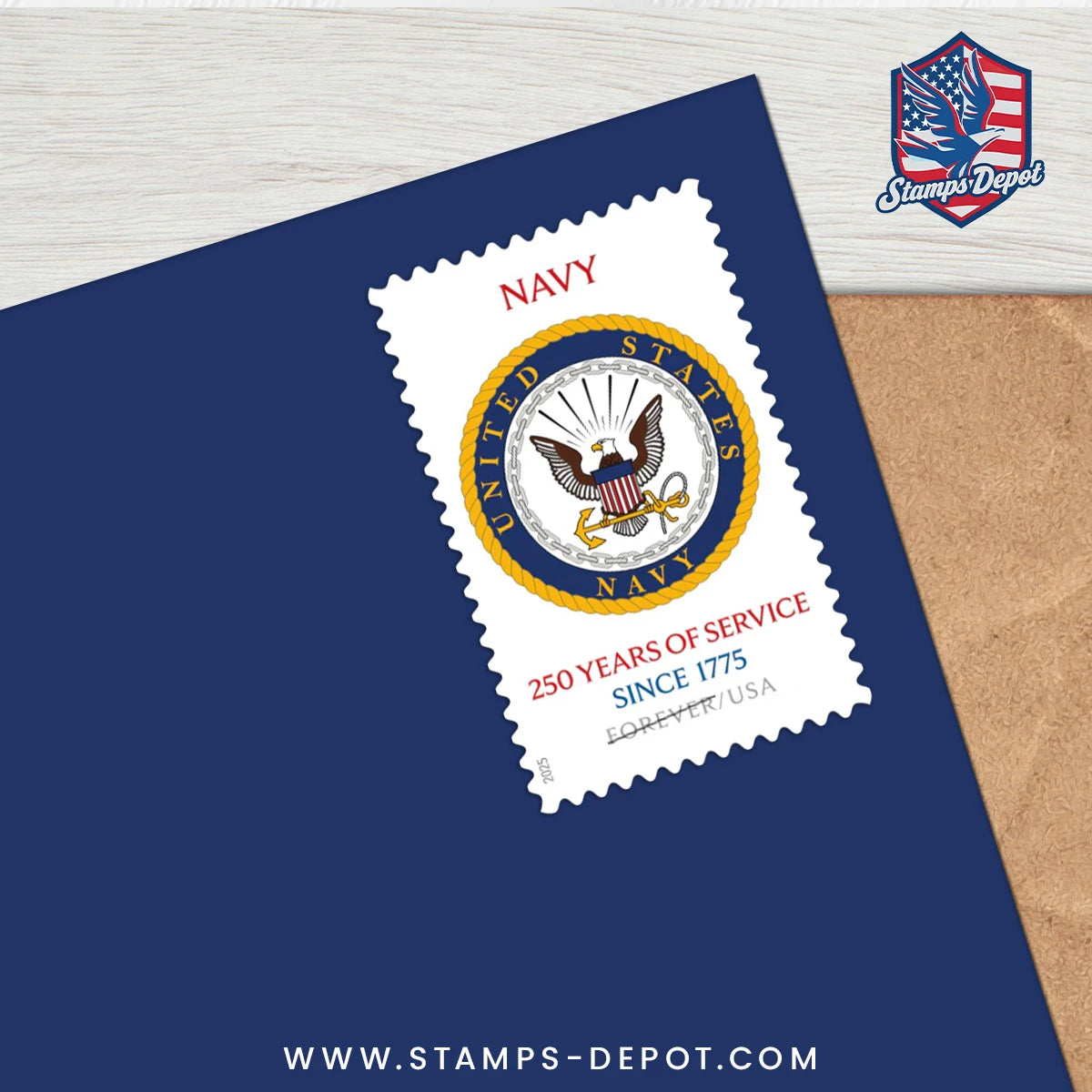 The U.S. Navy 250th stamp is being issued as a Forever® stamp. This Forever stamp will always be equal in value to the current First-Class Mail® one-ounce rate.